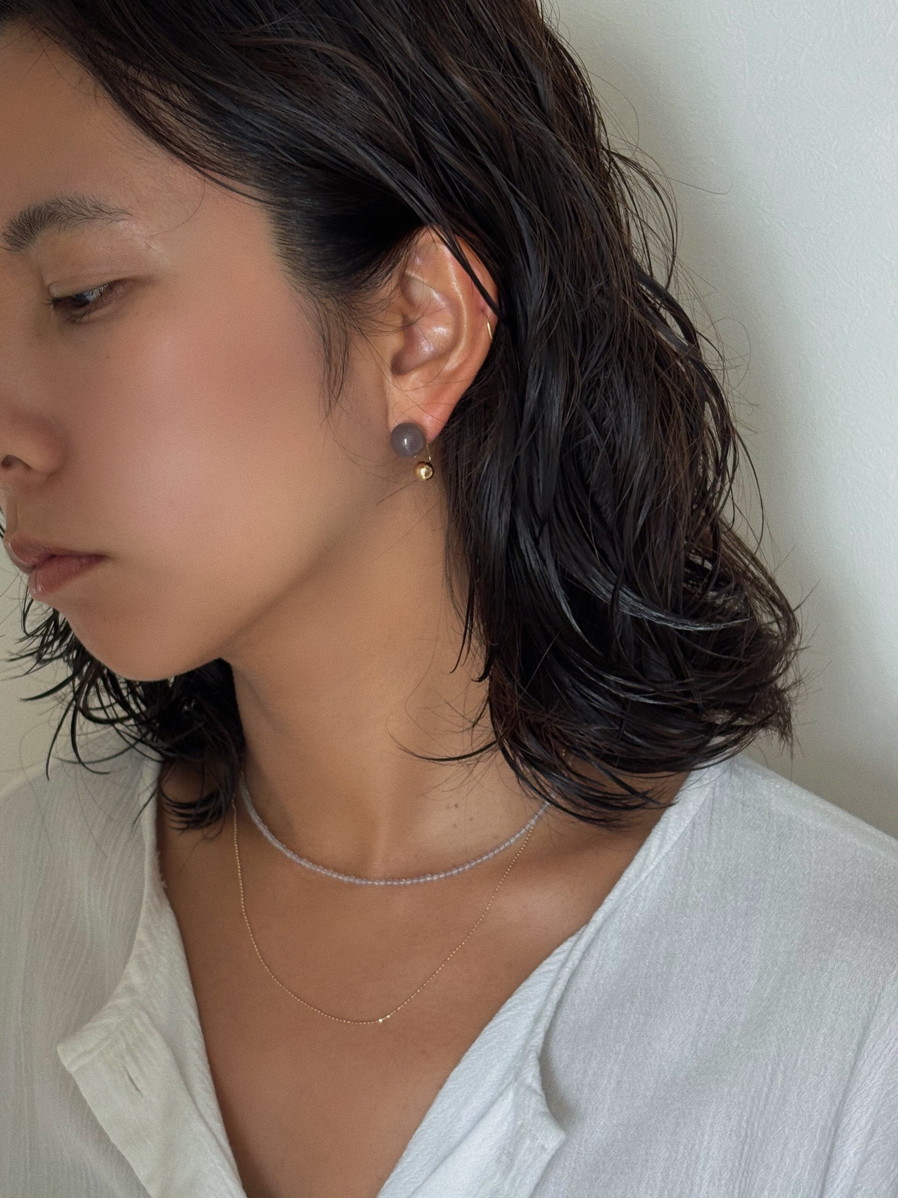 透明感があり、淡いグレーカラーがGOLD JEWERLYとの相性も良く、大人らしくご利用頂けるネックレスです。