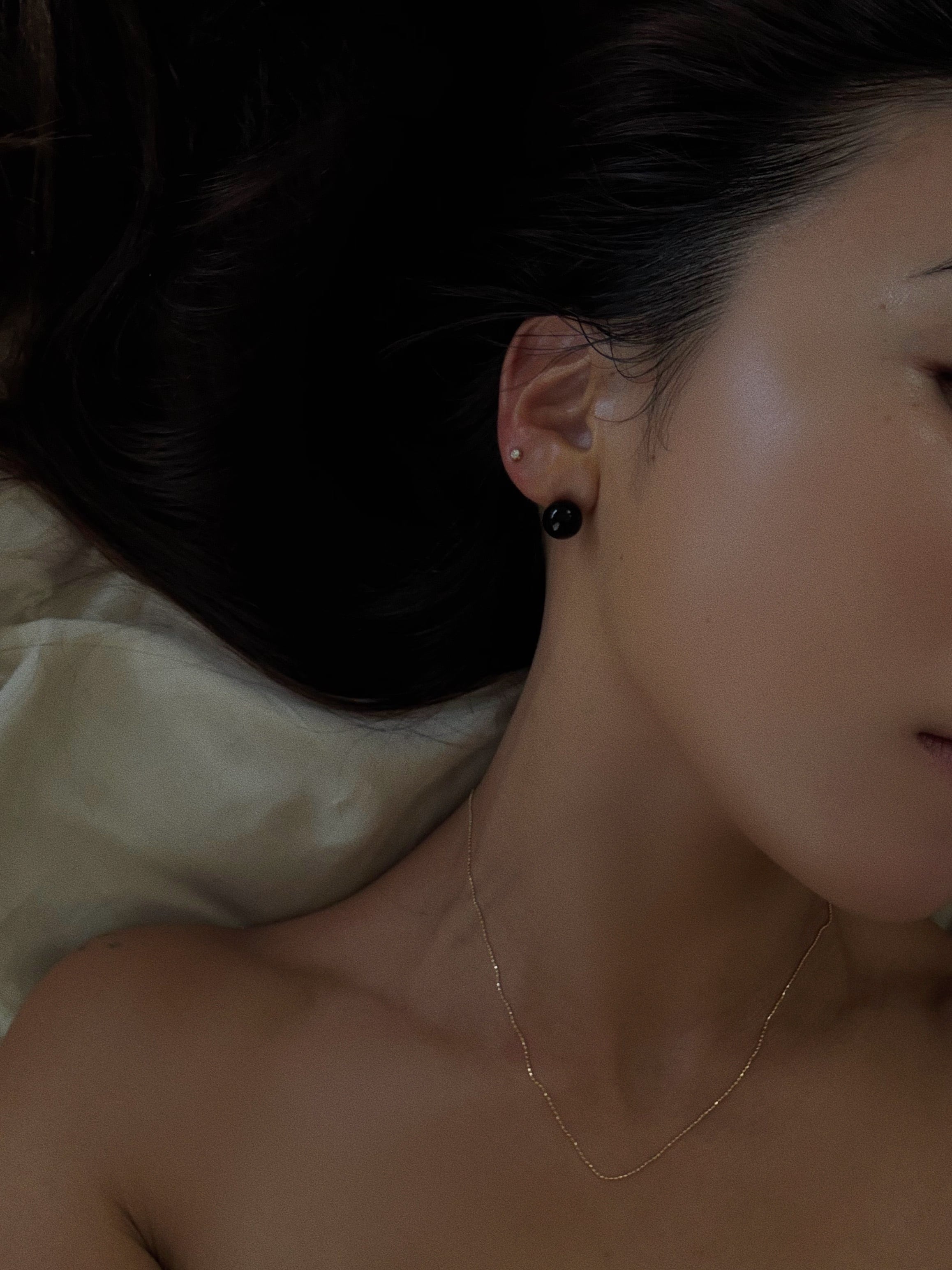 K18 Onyx basic earring ( BLACK&GLAY )